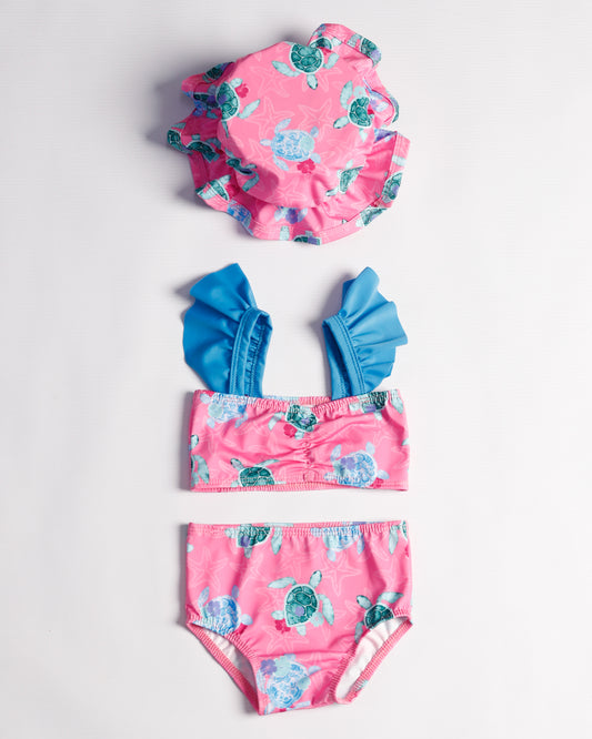 VESTIDO DE BAÑO CON PAVA TORTUGA ROSADO
