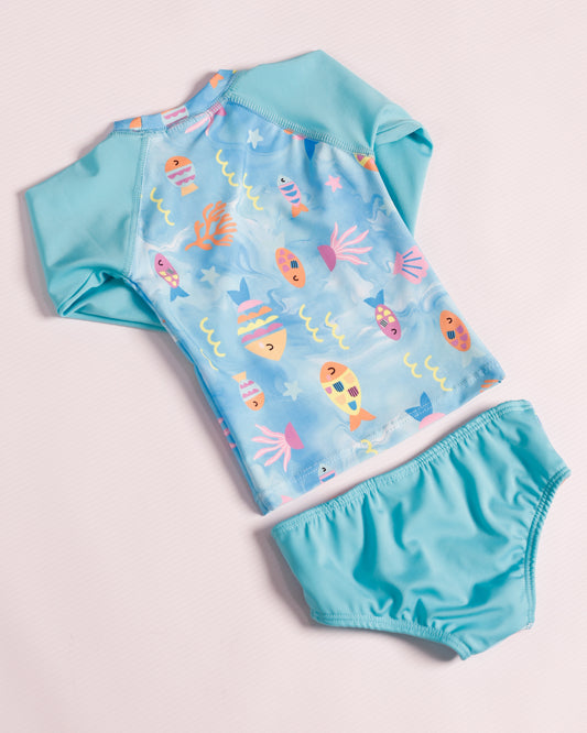 VESTIDO DE BAÑO AZUL PECES